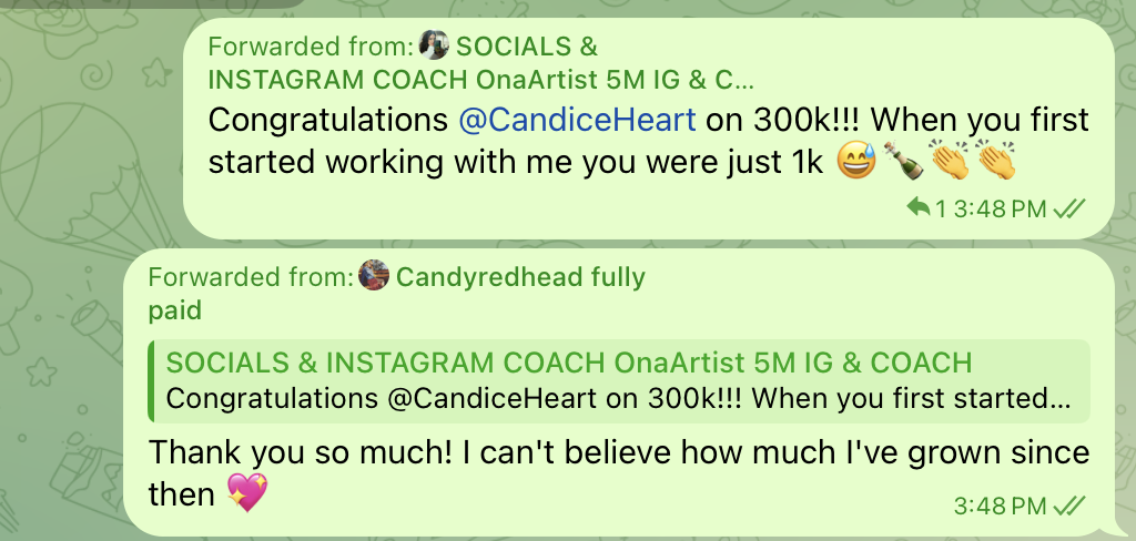 Voicenote from Amber mid-MFI about how fun it is to grow on IG.